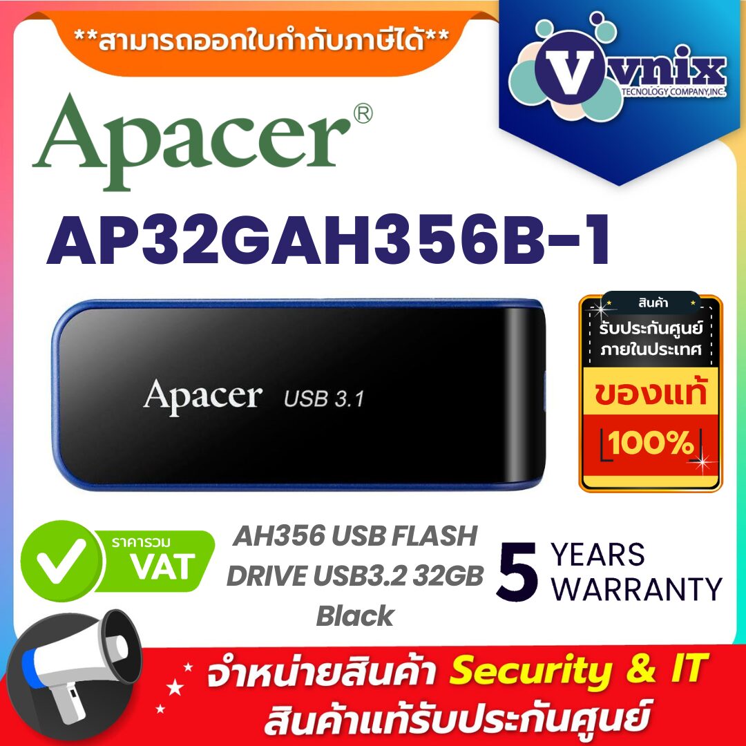 💾 Apacer AH356 USB 3.2 Flash Drive 32GB (รุ่น AP32GAH356B-1) – เร็ว แรง พกพาง่าย ดีไซน์พรีเมียม