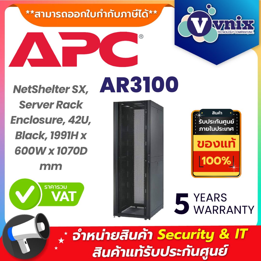 APC AR3100 NetShelter SX คือทางเลือกที่ยอดเยี่ยมสำหรับองค์กรที่ต้องการตู้แร็คที่มีความแข็งแรง ปลอดภัย รองรับการระบายอากาศได้ดี และรองรับอุปกรณ์ขนาดมาตรฐาน 19 นิ้วทุกรูปแบบ เป็นรุ่นที่ได้รับความไว้วางใจจากผู้เชี่ยวชาญด้านไอทีทั่วโลก