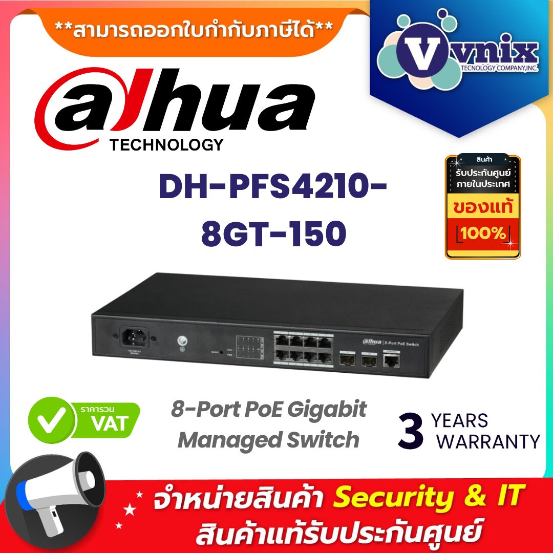 Dahua DH-PFS4210-8GT-150 เป็น สวิตช์เครือข่ายแบบ Managed PoE ระดับมืออาชีพ ที่มาพร้อม 8 พอร์ต Gigabit PoE+ และ 2 พอร์ต SFP สำหรับ Uplink ช่วยให้การเชื่อมต่ออุปกรณ์เครือข่ายมีความรวดเร็ว เสถียร และสามารถบริหารจัดการได้อย่างยืดหยุ่น เหมาะสำหรับใช้งานกับ กล้องวงจรปิด IP, Access Point, IP Phone รวมถึงระบบเครือข่ายภายในสำนักงานหรืออาคารขนาดเล็ก-กลาง