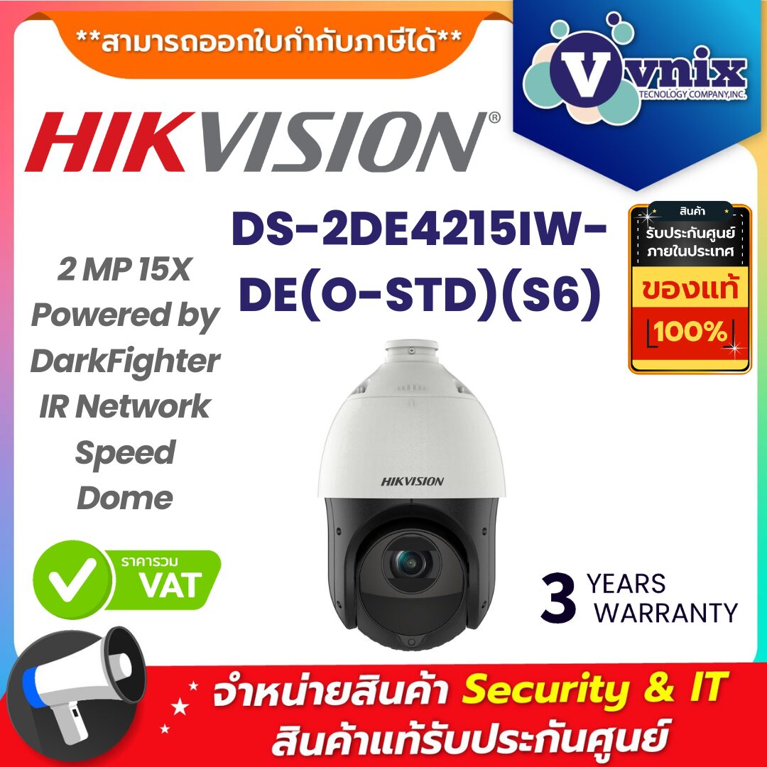 Hikvision DS-2DE4215IW-DE (S6) คือกล้องวงจรปิดแบบ Speed Dome PTZ (Pan-Tilt-Zoom) ที่ออกแบบมาเพื่อการเฝ้าระวังในระดับมืออาชีพ มาพร้อม ความละเอียด 2 ล้านพิกเซล, เลนส์ซูมออปติคอล 15 เท่า, และ เทคโนโลยี DarkFighter ที่ให้ภาพคมชัดแม้ในที่แสงน้อย