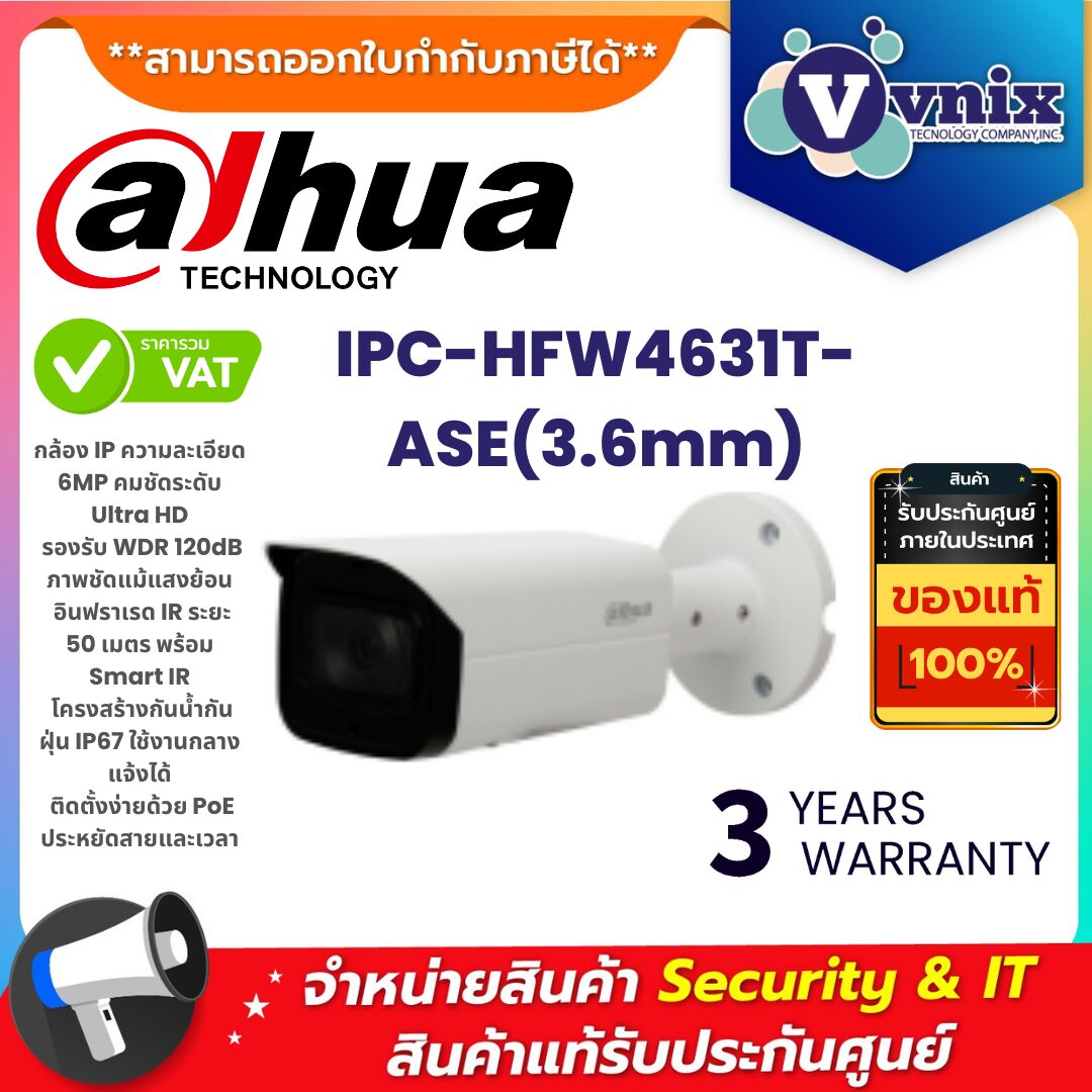 กล้องวงจรปิด Dahua IPC-HFW4631T-ASE (3.6mm) ถือเป็นทางเลือกที่ยอดเยี่ยมสำหรับผู้ที่ต้องการระบบรักษาความปลอดภัยระดับมืออาชีพ ด้วยคุณภาพของภาพระดับ 6MP, เทคโนโลยีวิเคราะห์ภาพอัจฉริยะ และความสามารถในการมองเห็นในที่มืดได้ชัดเจน จึงเหมาะสำหรับทั้งการใช้งานในบ้าน สำนักงาน หรือพื้นที่สำคัญอื่น ๆ ที่ต้องการความมั่นใจสูงสุดในระบบกล้องวงจรปิด