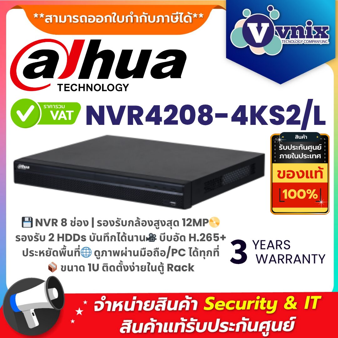 💾 Dahua NVR4208-4KS2/L | เครื่องบันทึกภาพ 8 ช่อง 1U รองรับ 2 HDDs สำหรับกล้องวงจรปิดคุณภาพสูง