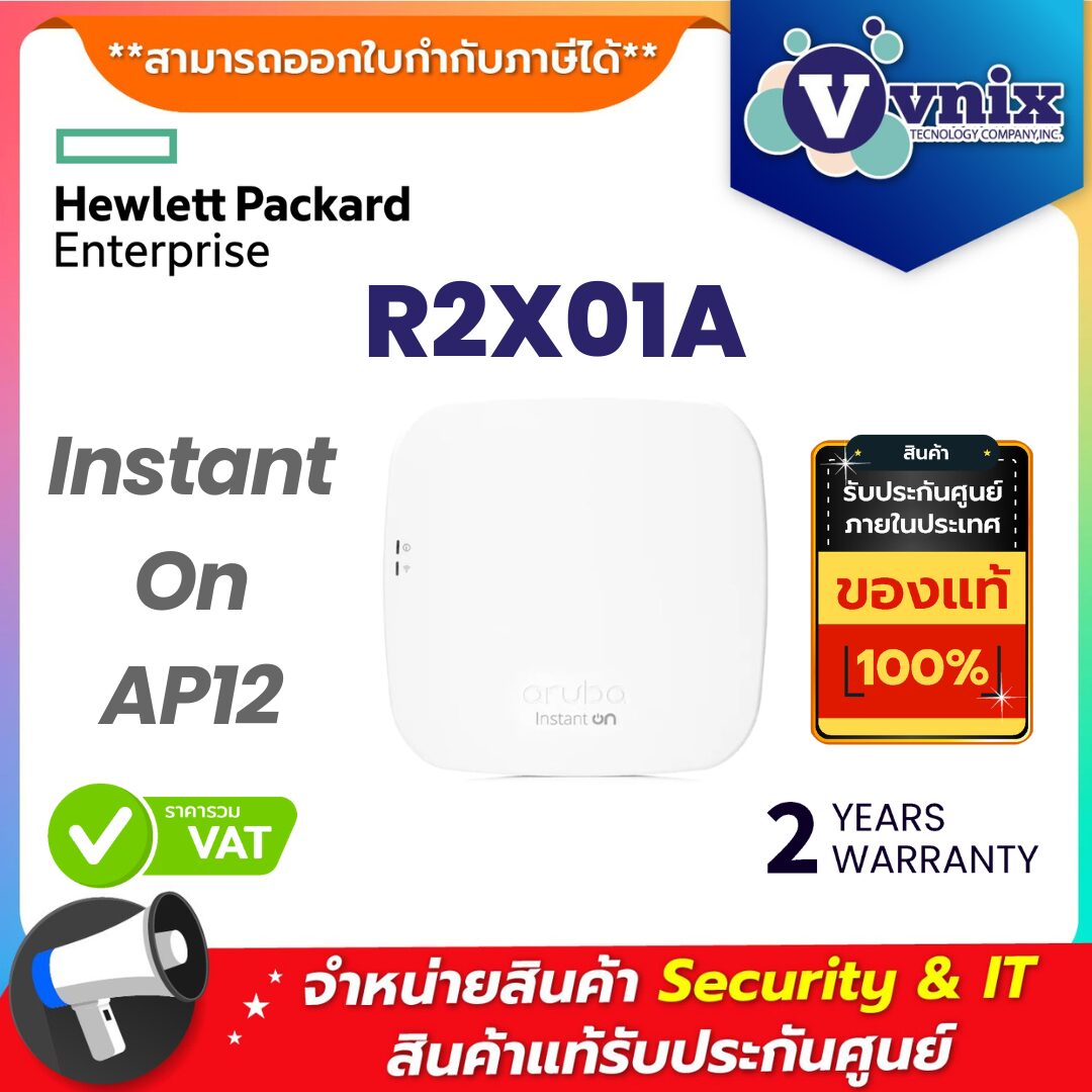 Aruba Instant On AP12 รุ่น R2X01A คือโซลูชัน Wi-Fi แบบไร้สายระดับมืออาชีพจาก Hewlett Packard Enterprise (HPE) ที่ออกแบบมาเพื่อรองรับการใช้งานใน สำนักงานขนาดเล็ก-กลาง, ร้านค้า, คลินิก, โรงเรียน และธุรกิจที่มีการใช้งานหลากหลาย โดยเน้นความเร็ว ความปลอดภัย และการจัดการที่ง่ายผ่านแอปพลิเคชัน