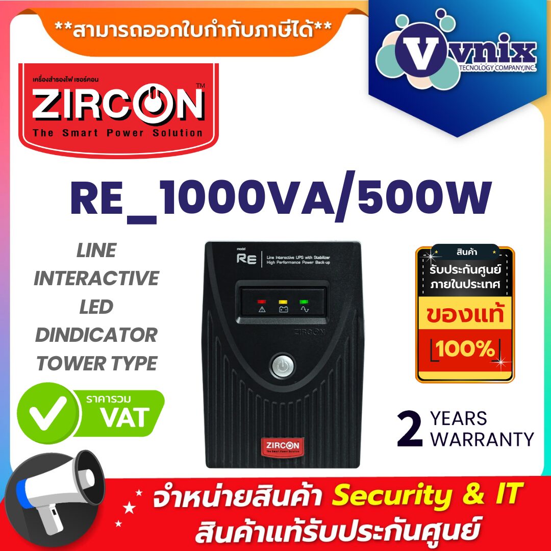 🔋 ZIRCON รุ่น RE 1000VA/500W